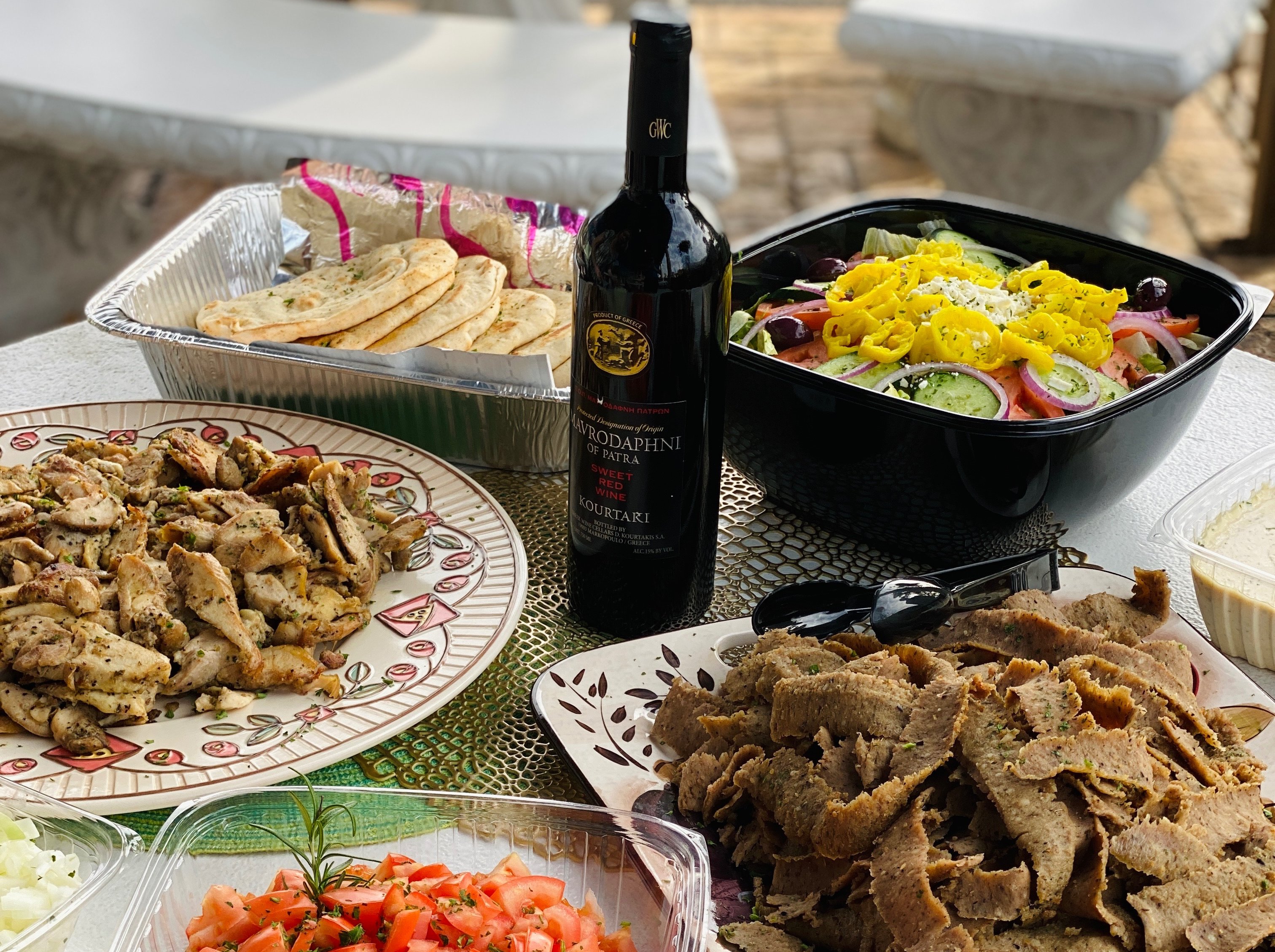 Greek-style gyro meat, thinly sliced, char-grilled chicken tenders, and souvlaki-filet mignon tips marinated for 48 hours.