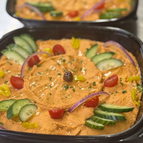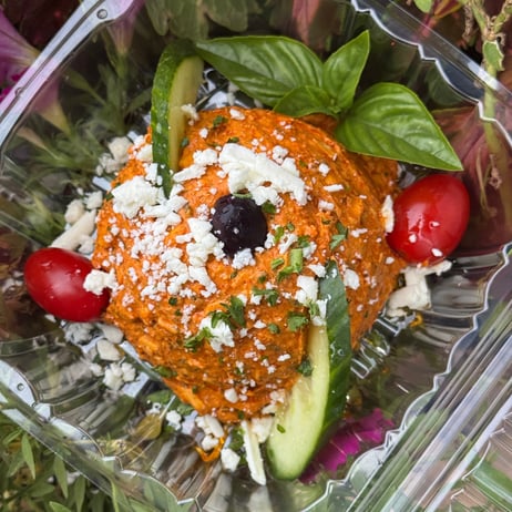 Fresh Cabbage Rolls stuffed with rice, ground steak and pure lamb that we prepare ourselves, and finely cut vegetables spiced to perfection and topped with our house made tomato sauce, shredded parmesan, crumbled feta cheese, freshly diced tomatoes, & sliced black olives!
